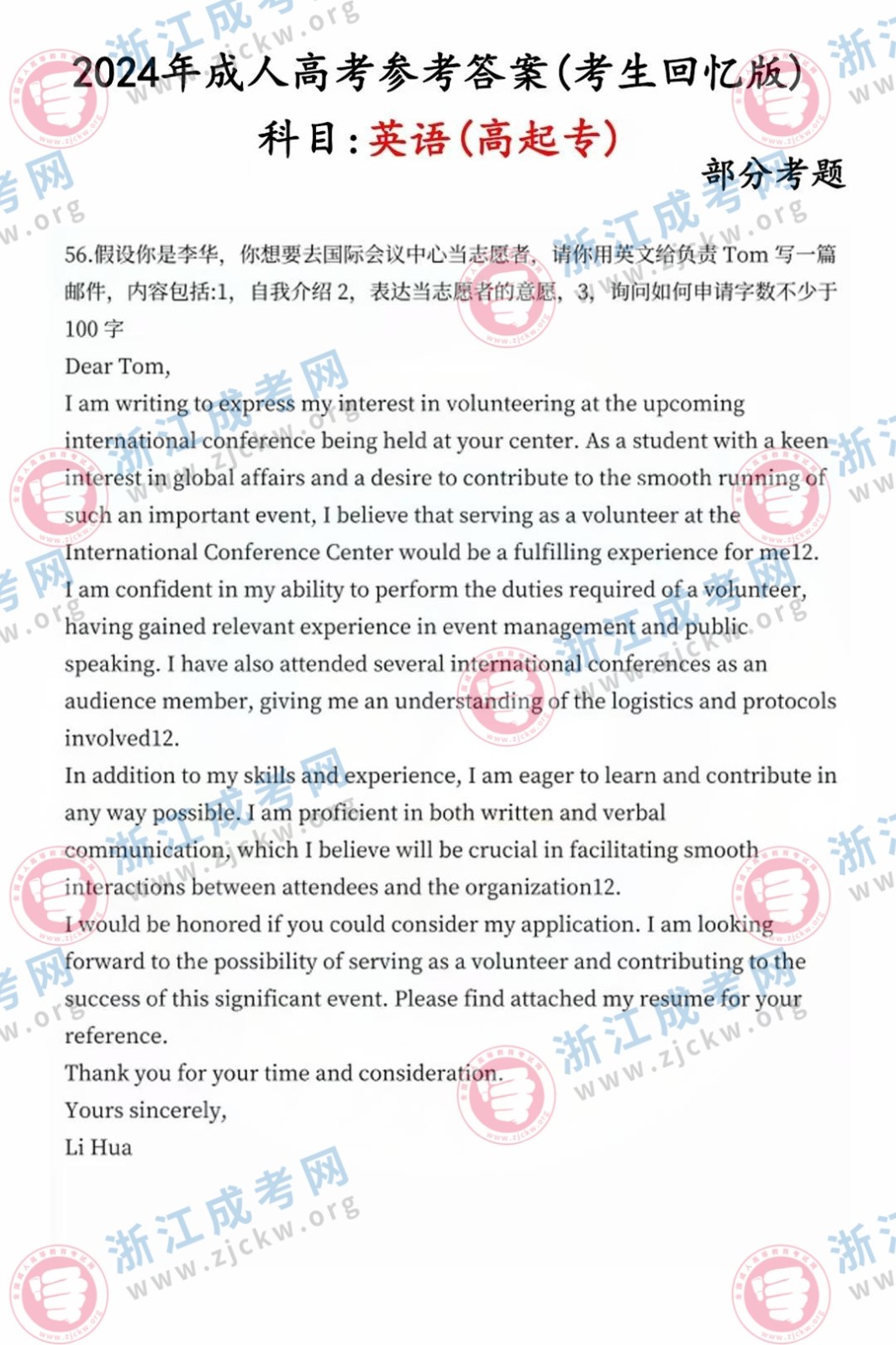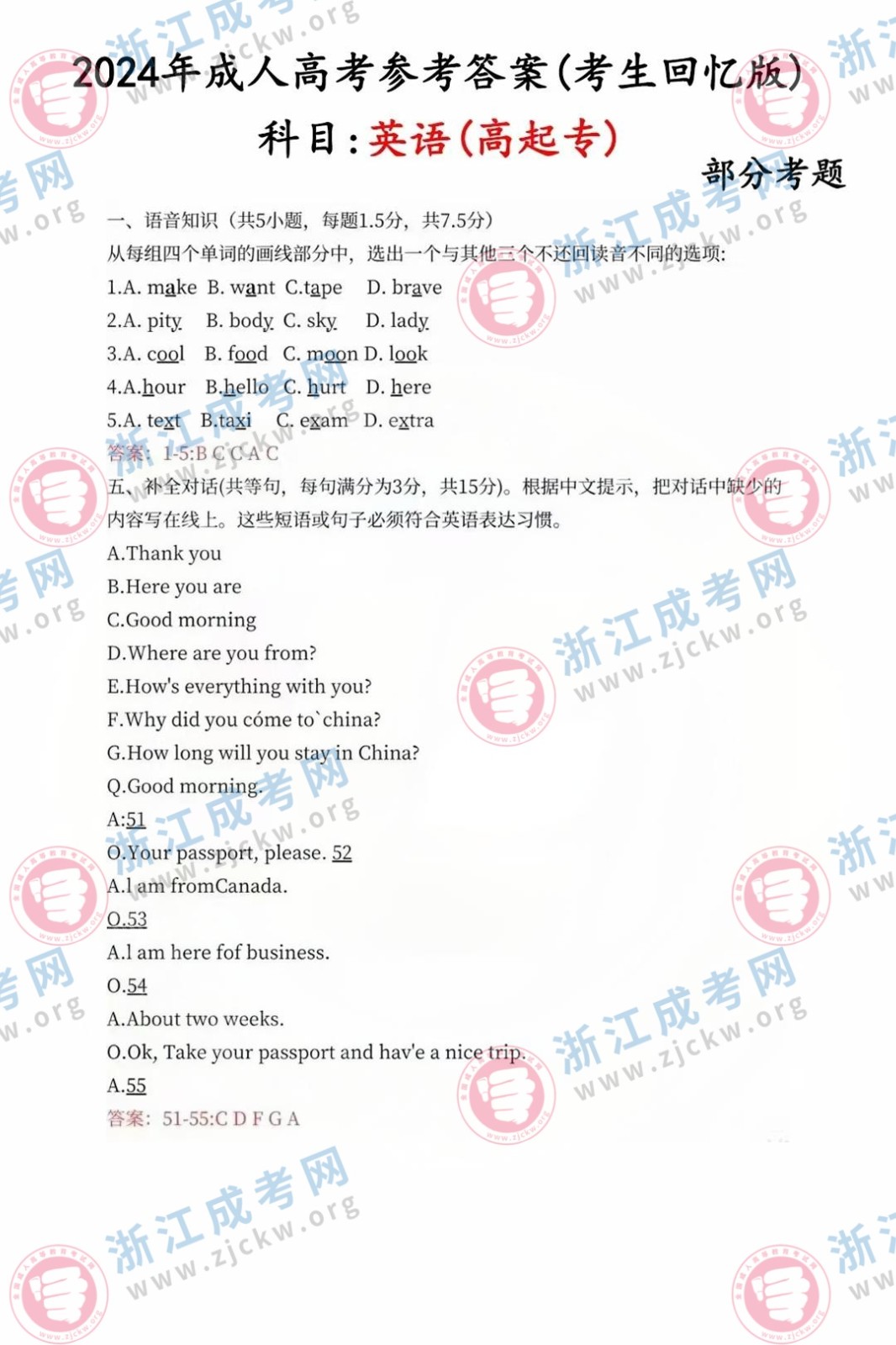 杭州成考網(wǎng)為廣大考生提供2024年成人高考全國(guó)統(tǒng)一考試(高起點(diǎn)英語)真題答案